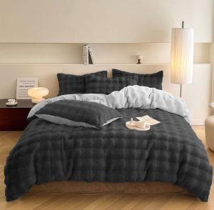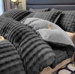 Pościel luxury black welur -futrzana bardzo ciepła gruba z wytłaczanym wzorem czarno-szara 160x200cm