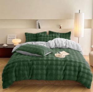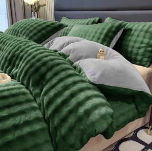 Pościel luxury Green &Grey welur-futrzana bardzo ciepła gruba z wytłaczanym wzorem zielono-szara160x200cm